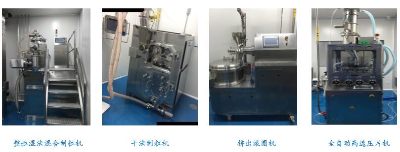 口服固體車間可生產(chǎn)片劑、硬膠囊劑、顆粒劑和散劑,分別有中試生產(chǎn)和商業(yè)化生產(chǎn)兩條生產(chǎn)線。主要生產(chǎn)設(shè)備有高效剪切濕法混合制粒機(jī)、干法制粒機(jī)、擠出滾圓機(jī)、沸騰制粒機(jī)、沸騰干燥機(jī)、三維混合機(jī)、高速壓片機(jī)、高效包衣機(jī)、全自動膠囊填充機(jī)、鋁塑包裝機(jī)、顆粒分裝機(jī)、散劑包裝機(jī)、自動瓶裝線等,固體制劑各劑型具備20-180kg/批的生產(chǎn)能力。