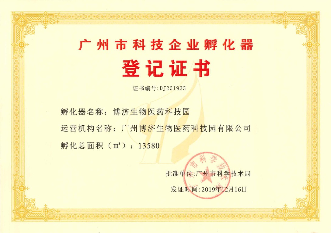 博濟(jì)科技園已于2019年12月取得廣州市科技企業(yè)孵化器登記證書,孵化總面積為13,580㎡,入駐企業(yè)達(dá)18家。目前博濟(jì)科技園正在規(guī)劃II孵化器建設(shè),建成后建筑面積達(dá)60,000余㎡,滿足40-50家企業(yè)入駐需求。