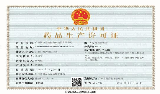 博濟(jì)科技園藥品生產(chǎn)許可證范圍包括片劑、硬膠囊劑、顆粒劑、散劑、中藥前處理和提取、原料藥。